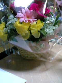 なんとお花がっ!!きれいですvv今日は店長と会わない日だったので、お向かいの店員さんに渡すように頼んだみたいです。そして、誕生日プレゼントだそうです。